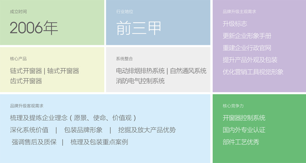 客戶希望樹立一個國內(nèi)一流的窗控設(shè)備,一個可以和國外一流的品牌一較高下的品牌形象,建立高端、完整的品牌視覺形象識別系統(tǒng)。