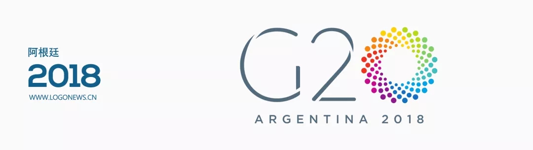 2018年在阿根廷布宜諾斯艾利斯(Buenos Aires)舉行的G20峰會LOGO則由多種不同的圓形色塊組成,其中圍繞圓外圍的20個小的圓點象征了20個成員國,由內(nèi)向外延伸的五個圓點代表了五大洲,而整個標志中一共由100個圓點組成,代表了融合整個世界。而五彩斑斕的配色則表達了本屆會議的話題,即多樣性和可持續(xù)發(fā)展。