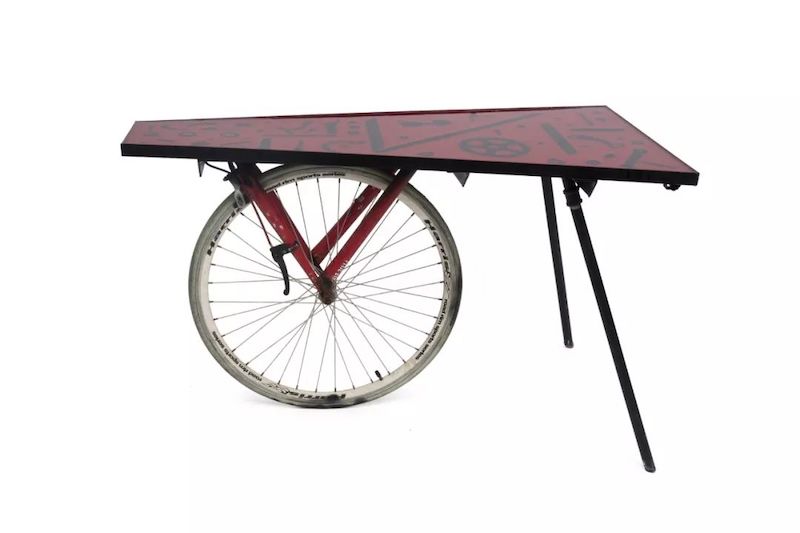 比如來(lái)自深圳獨(dú)特視野建筑公司,便將廢棄的單車回收,用輪胎和手柄改造設(shè)計(jì)了個(gè)移動(dòng)餐桌吧凳。