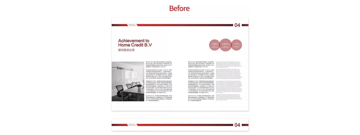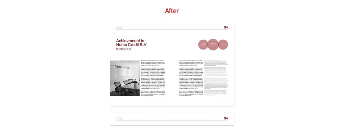 這是經(jīng)??吹降囊环N頁(yè)眉頁(yè)腳的編排方式,但是從整體上看,會(huì)顯得有點(diǎn)沉重。色塊條過(guò)于粗,顯得特別突兀和粗糙。我們應(yīng)該讓它更精致和簡(jiǎn)約些,而不應(yīng)該搶了版面主體的信息。將色塊條變成長(zhǎng)細(xì)線,貫穿整個(gè)頁(yè)面。頁(yè)碼數(shù)字稍微縮小,盡顯整個(gè)頁(yè)碼和頁(yè)眉更精致,這樣才會(huì)提升整體的檔次感。其次,你還可以讓線有更加多的變化,或者與品牌logo結(jié)合,又或者改變位置,形成新的方式去展現(xiàn)。但是,前提一定要保證頁(yè)眉頁(yè)腳足夠簡(jiǎn)潔明了,不能過(guò)于裝飾性。