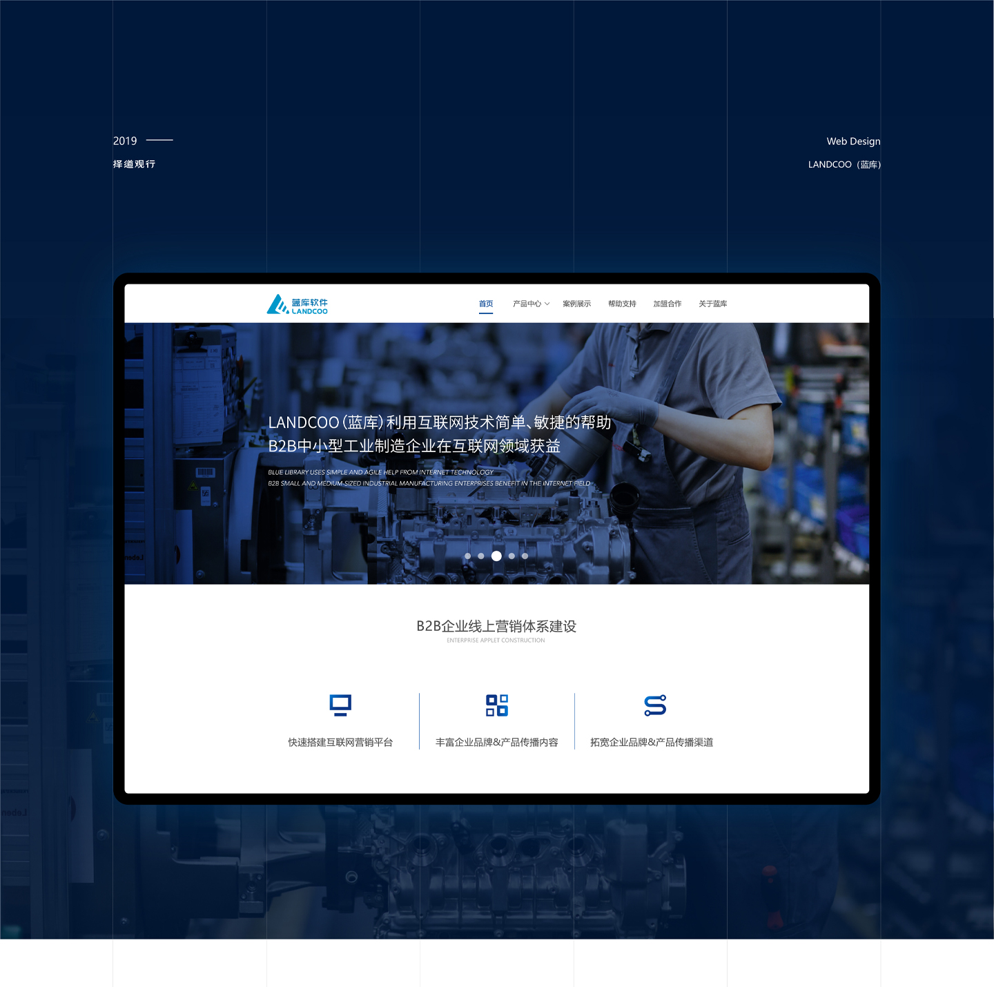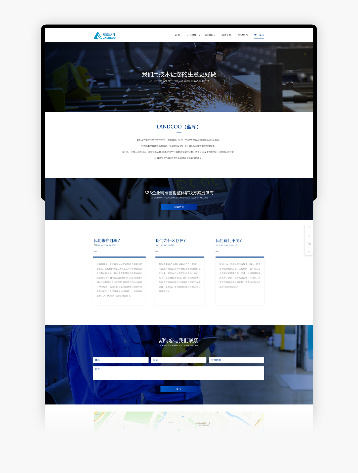 互聯(lián)網(wǎng)技術(shù)企業(yè)官網(wǎng)設(shè)計--藍(lán)庫軟件網(wǎng)站設(shè)計,LANDCOO(藍(lán)庫)是一家Smart Marketing(智能營銷)公司,專注于B2B企業(yè)低頻高消的商業(yè)模型,利用互聯(lián)網(wǎng)技術(shù)和品牌戰(zhàn)略,幫助我們的客戶更好的實(shí)現(xiàn)市場營銷及品牌傳播。