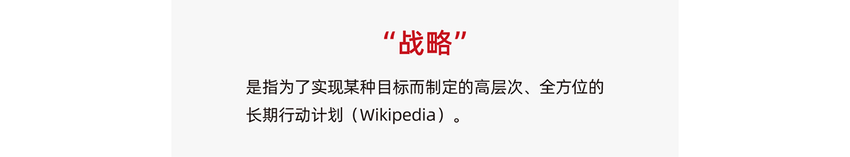 “戰(zhàn)略”一般多數(shù)用于軍事用語(yǔ),英文單詞“strategy”源于古希臘語(yǔ)“strategos”,中國(guó)古代最早出現(xiàn)于西晉時(shí)期司馬彪著作《戰(zhàn)略》,春秋孫武的《孫子兵法》是被公認(rèn)為中國(guó)最早對(duì)“戰(zhàn)略”進(jìn)行全局籌劃的著作。言簡(jiǎn)意賅,“戰(zhàn)略”的目標(biāo)只有一個(gè),那就是戰(zhàn)勝競(jìng)爭(zhēng)對(duì)手。